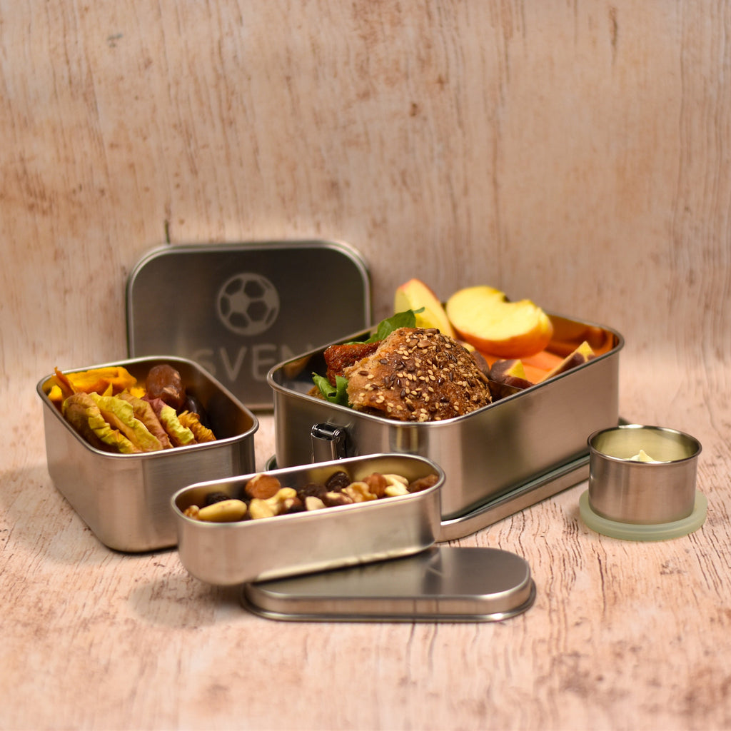 Viele unserer Znüniboxen aus Edelstahl sind auch als personalisierte Lunchboxen mit individueller Gravur erhältlich. Die Gravur kannst du selbst nach deinen Wünschen konfigurieren.