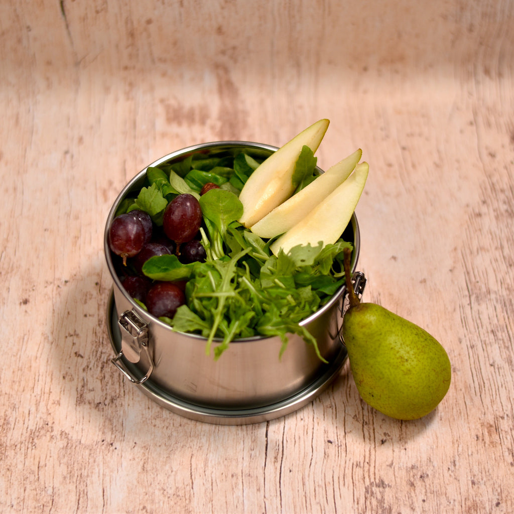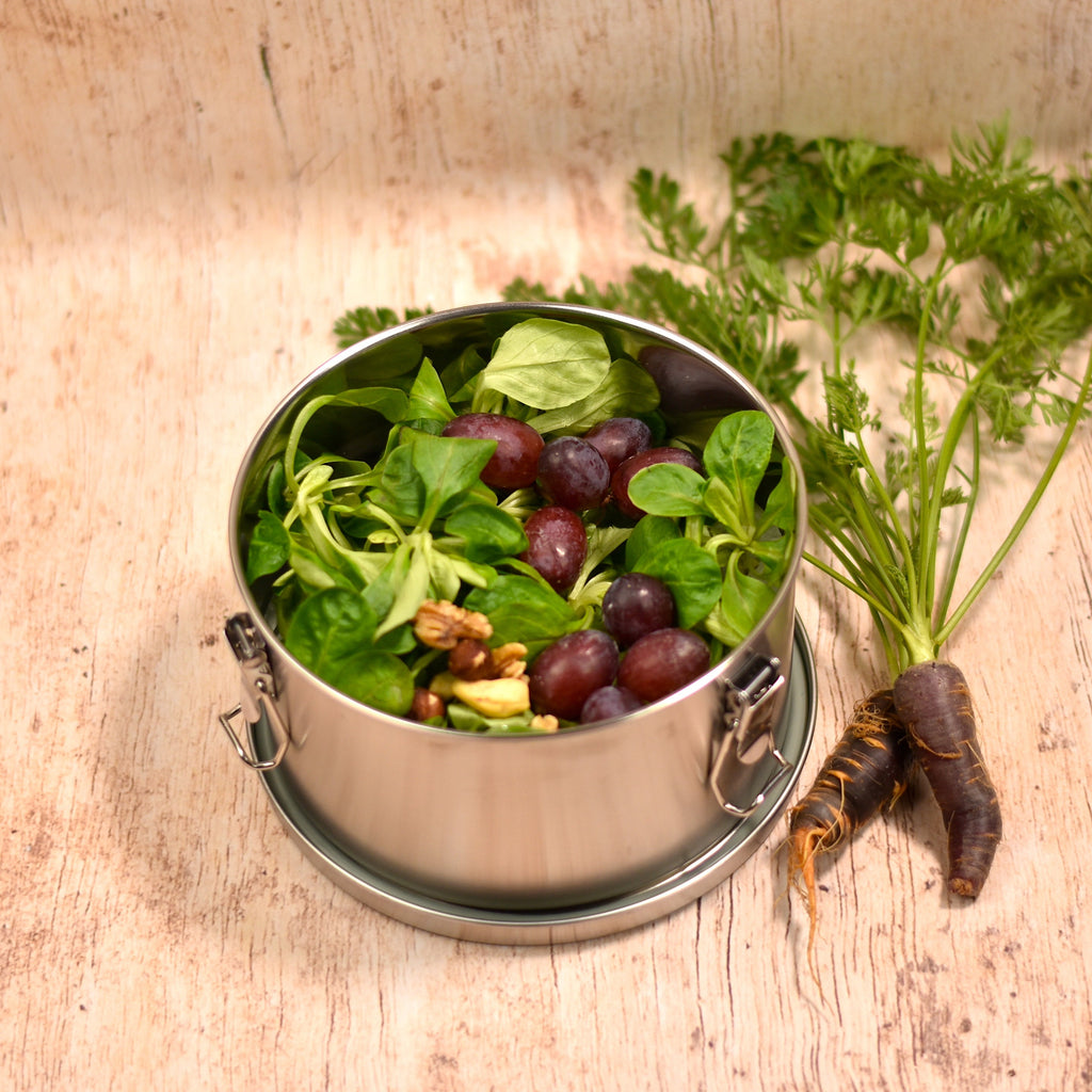 Bei unseren lebensmittelechten Edelstahl-Behältern kannst du sicher sein, dass sich garantiert keine Schadstoffe aus den Behältern lösen, egal ob du kaltes oder warmes Essen einfüllst. Unsere auslaufsicheren Behälter in den diversen Grössen eignen sich wunderbar als plastikfreie Vorratsdosen, Aufbewahrungsdosen, für den Transport jeglicher Lebensmittel und als sinnvolles Geschenk für umweltbewusste Menschen.