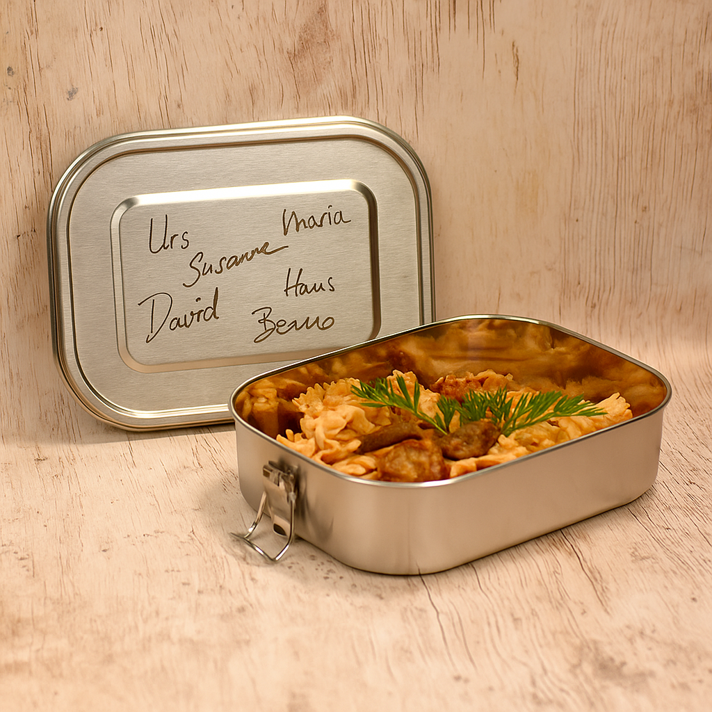 Fast jede Art von Logo kann einfach auf unsere Lunchboxen graviert werden, wenn ihr uns eine Version mit weissem Hintergrund und schwarzen Linien und Flächen zur Verfügung stellt.