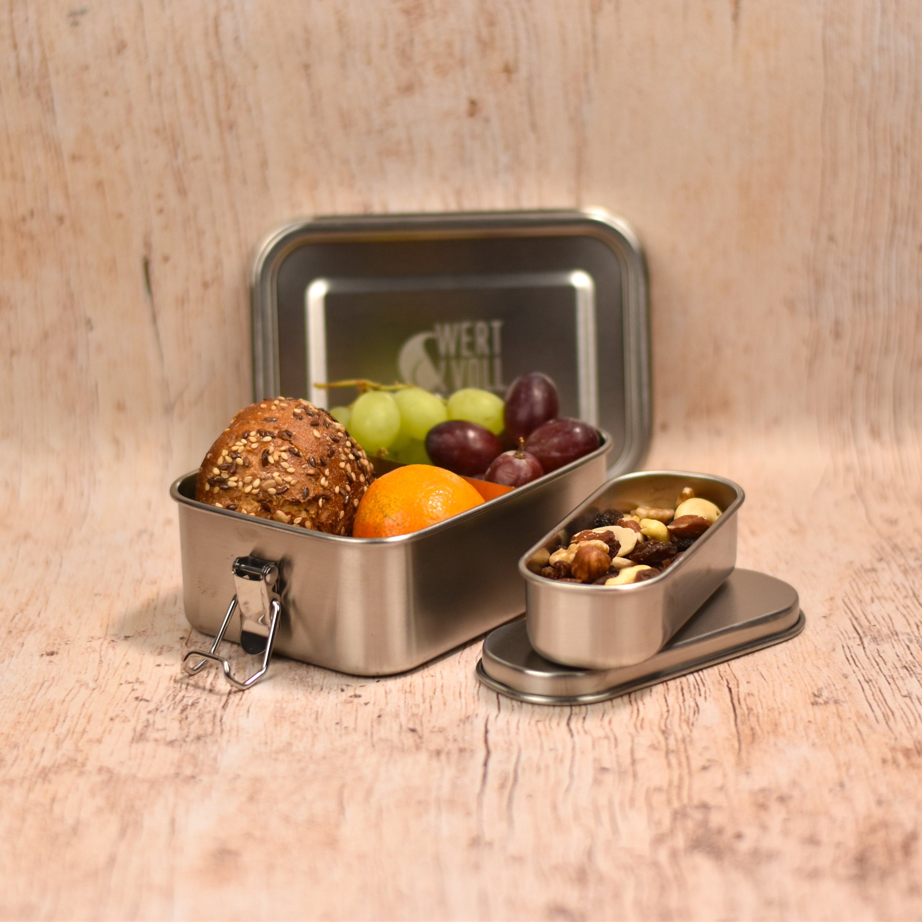 Unsere Edelstahl-Lunchbox in der Größe 600ml mit Gravur und unser Snackbehälter aus Edelstahl mit Gravur zählen zu unseren beliebtesten Geschenken.
