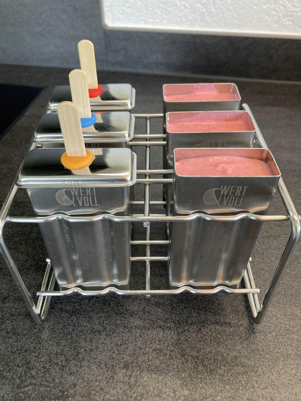 - Six popsicle molds, approx. 100-110 ml
