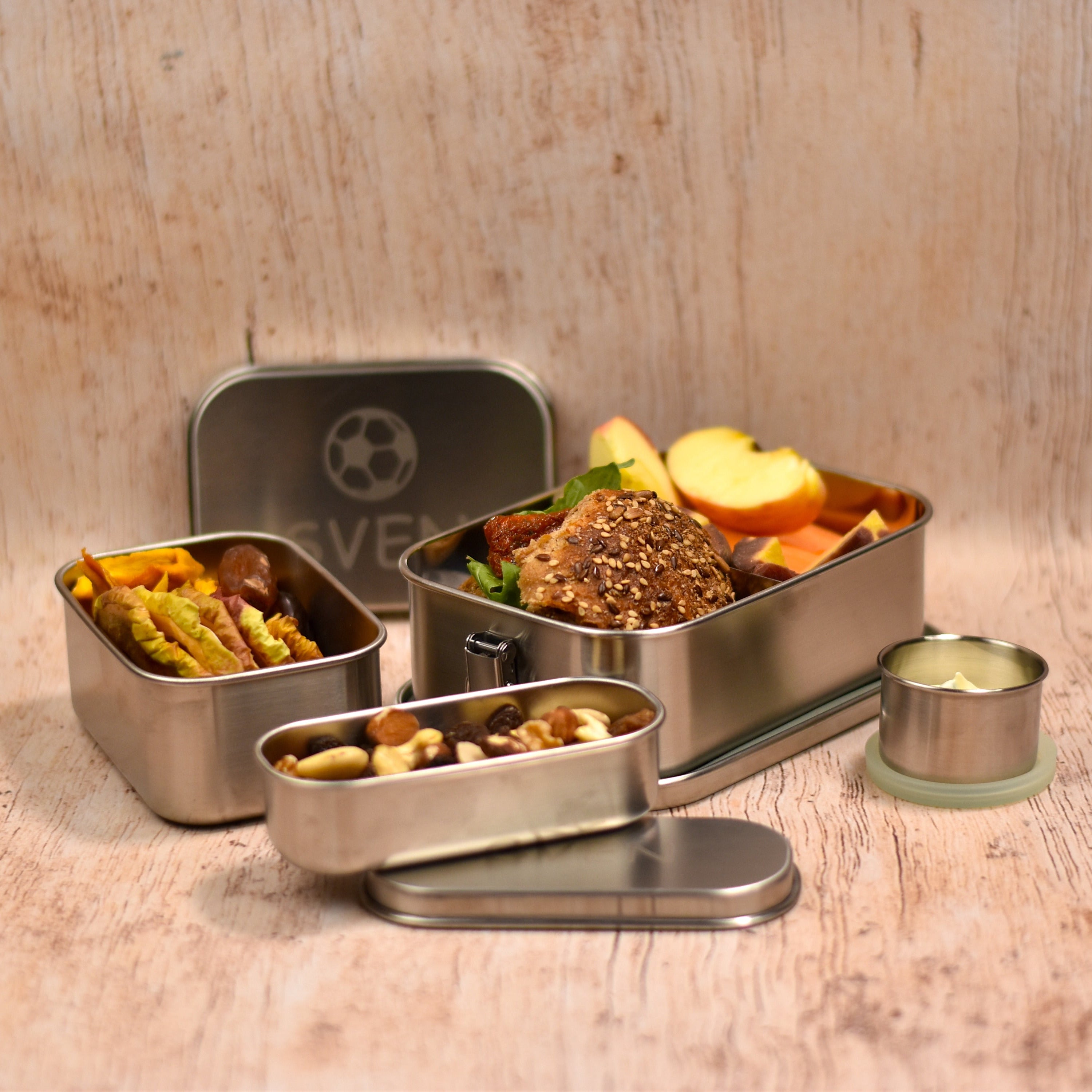 Die Mini Lunchbox 360ml mit Gravur ist eine perfekte Ergänzung zur grösseren Lunchbox: Als Ersatz für kurze Schultage, wenn nur ein kleines Znüni benötigt wird, oder als Erweiterung für längere Ausflüge, wenn der Platz in der grossen Lunchbox nicht reicht.